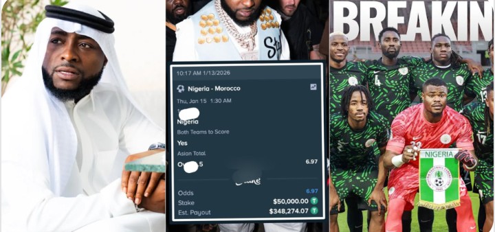 Prominent singer, Davido breaks silence after he lost a whopping $348K (N495 million) after the Nigerian Super Eagles got defeated by Morocco in the 2026 AFCON.