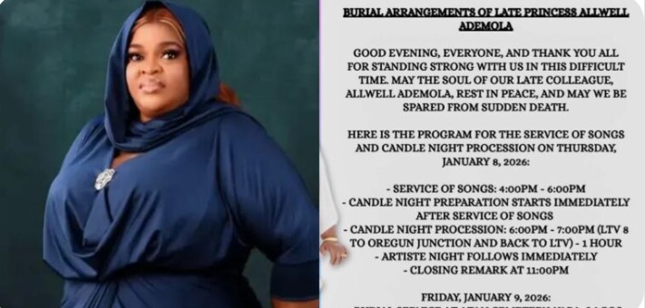 BURIAL ARRANGEMENTS OF LATE PRINCESS ALLWELL ADEMOLA