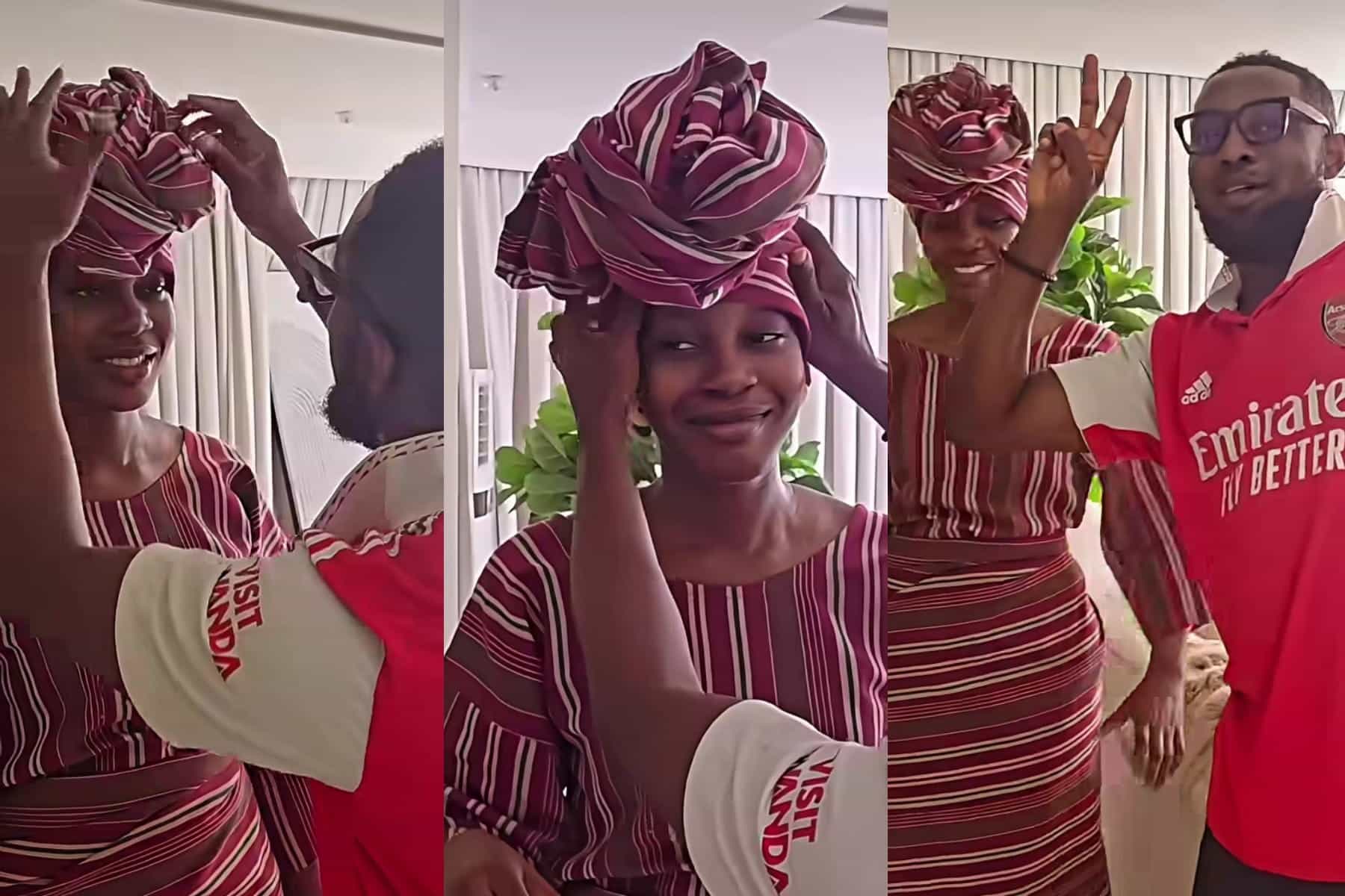 Nigerian comedian and actor Ayo Makun, better known as AY, has shared an adorable video of himself struggling with his daughter’s headtie.