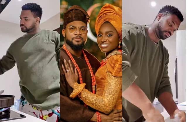 In reaction to this, the actor was seen getting punished over his prediction which went wrong. Saro has he’s been known got engaged in an house chores which saw him washed all dishes in the house while his wife watched from afar with a smiling face.